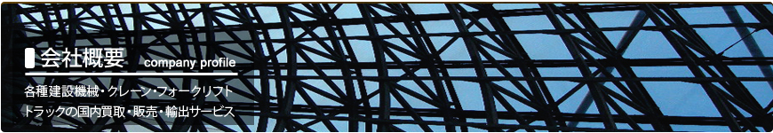 | 事業内容 | 中古建設機械・クレーン・トラック・フォークリフト 国内買取・販売及び 輸出 |